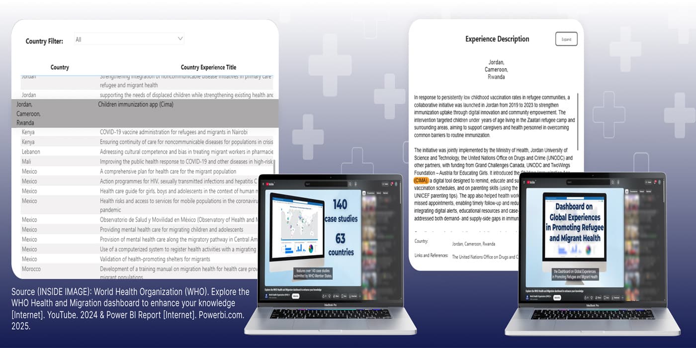 The WHO Dashboard serves as a comprehensive global repository showcasing evidence-based interventions that address the health needs of refugees and migrants across all six WHO regions. Selection criteria emphasize demonstrated implementation effectiveness, measurable impact, regional representation, and potential for scale-up—all hallmarks of CIMA's multi-country deployment. [1]