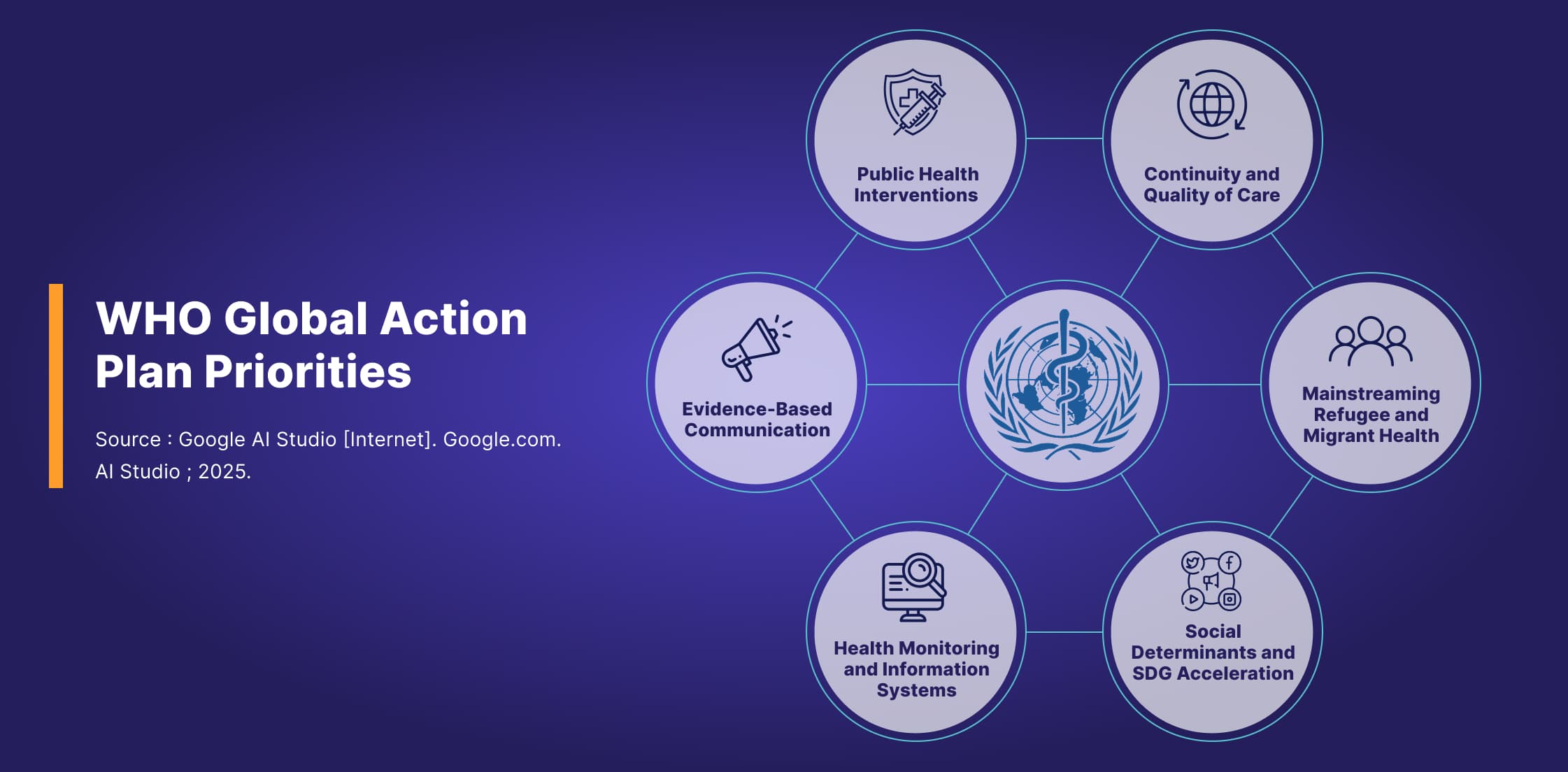 - Priority 6 – Evidence-Based Communication:The platform provides factual, timely, culturally sensitive health information that counters vaccine hesitancy and misinformation while building trust between health systems and refugee communities.